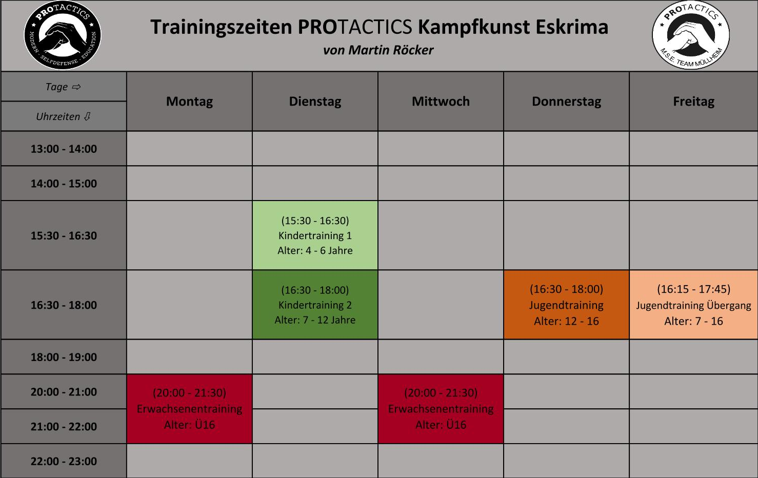 Gruppentrainingszeiten